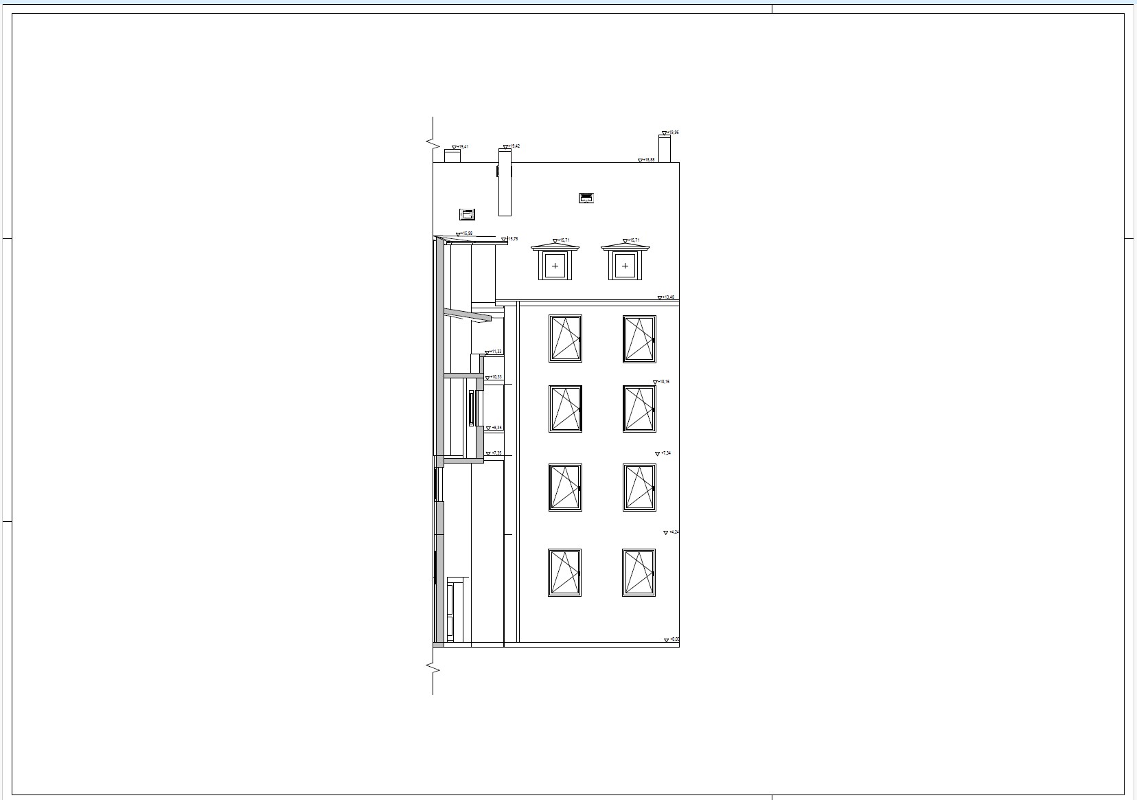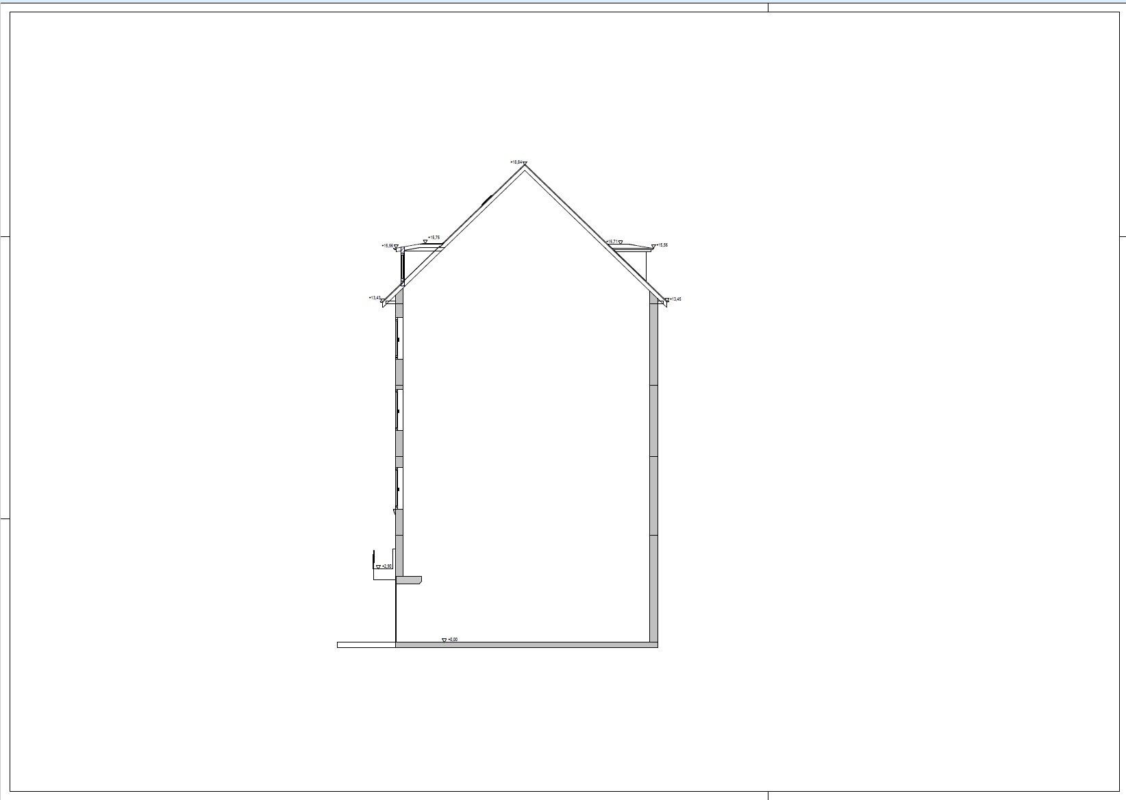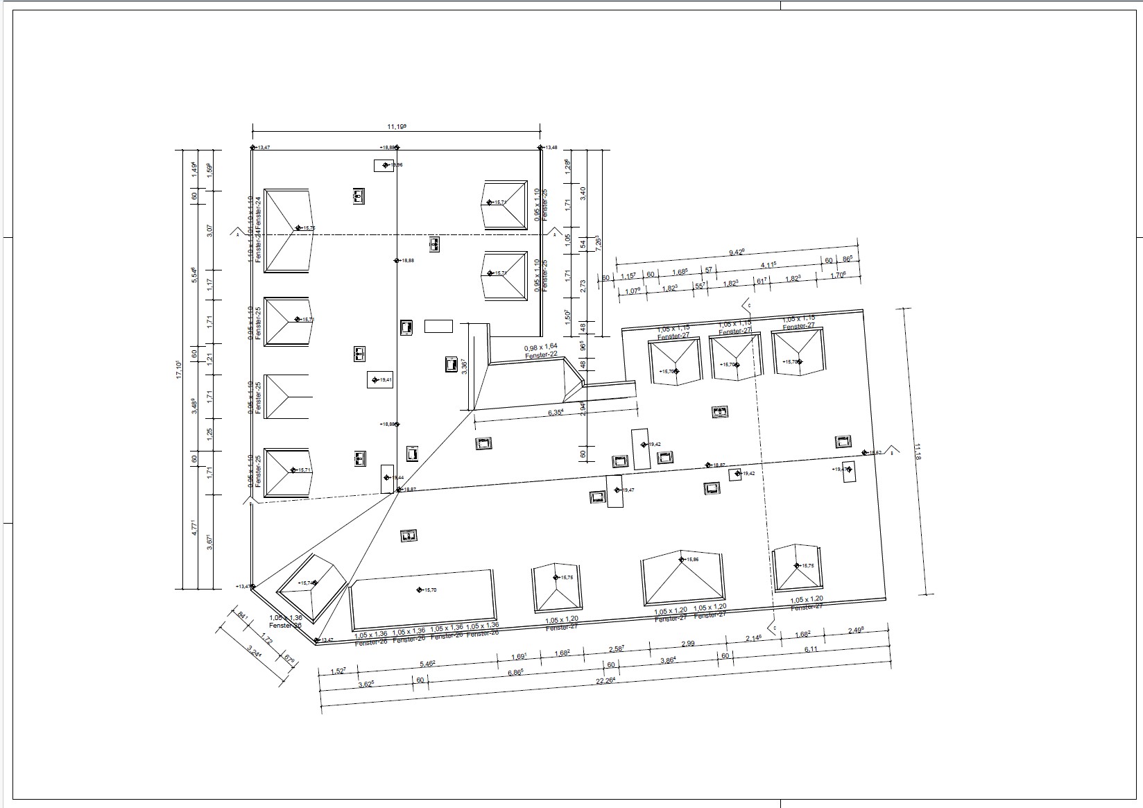 - Gebäudeschnitte mit Höhenangaben