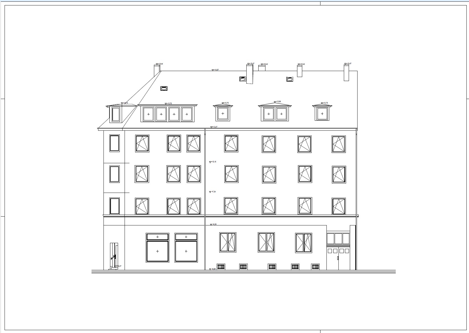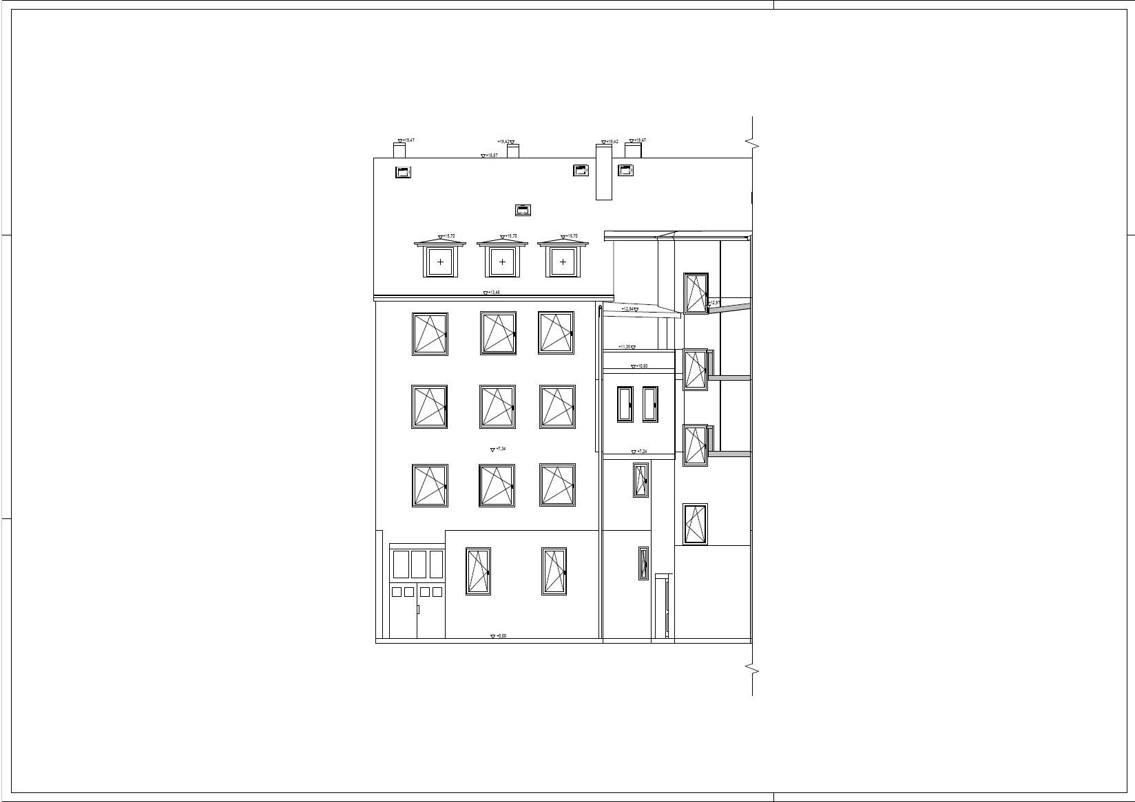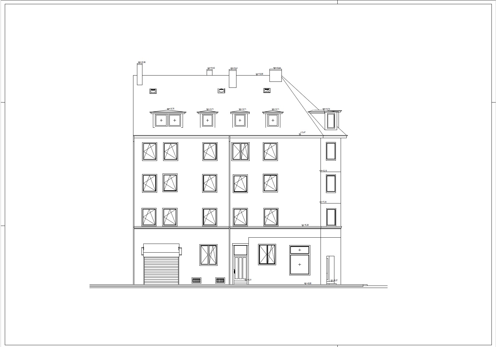 - Gebäudeschnitte mit Höhenangaben
