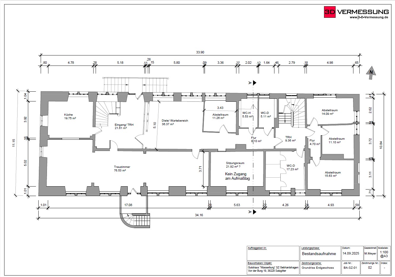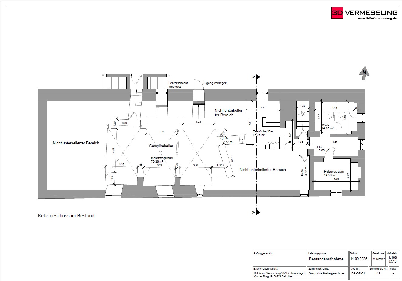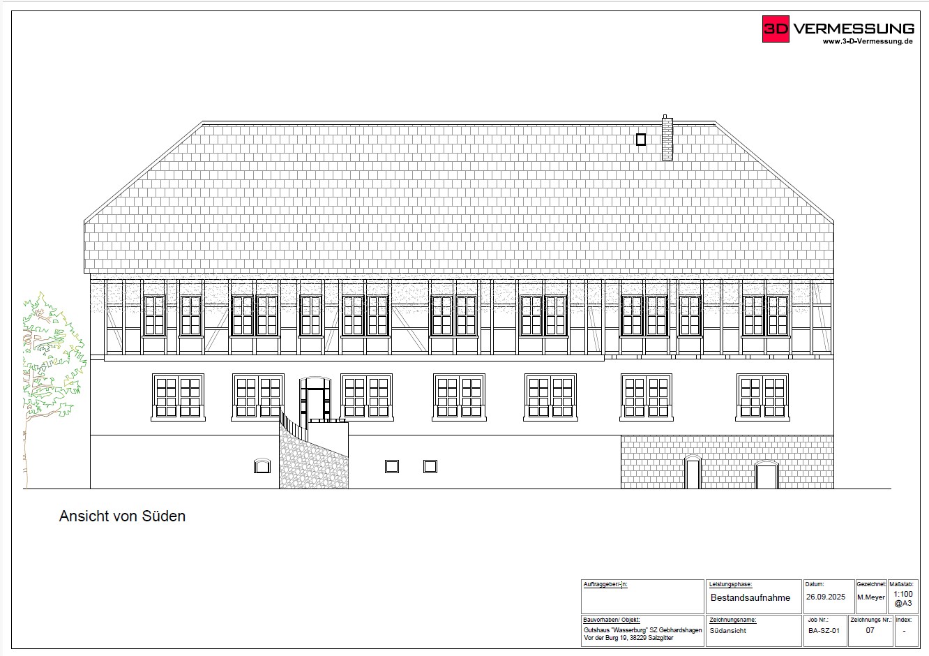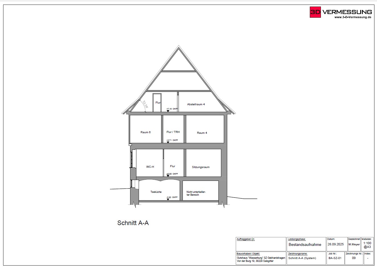 Ziel der Vermessung war die präzise Dokumentation der bestehenden Gebäudestrukturen als Grundlage für Planung, Sanierung und denkmalpflegerische Maßnahmen.