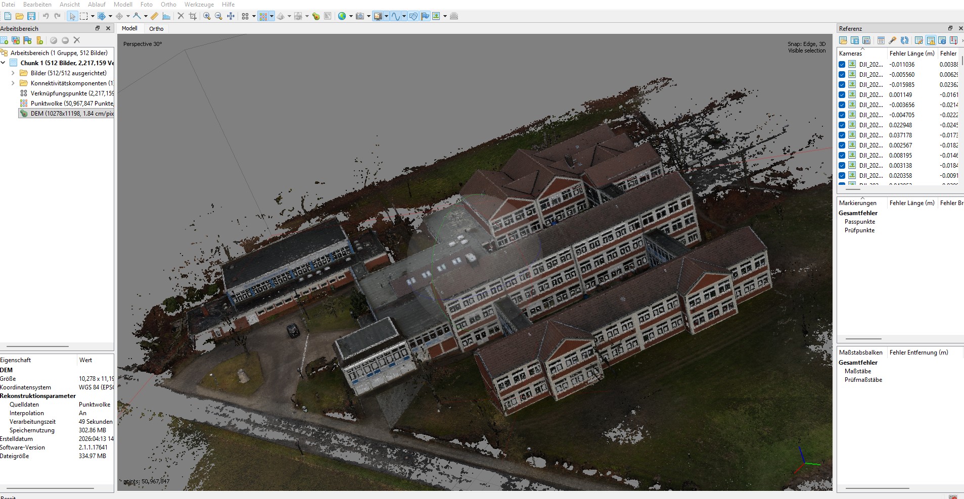 Durch die Kombination vieler Einzelbilder entsteht ein präzises digitales Modell, das für weitere Planungsprozesse genutzt werden kann.